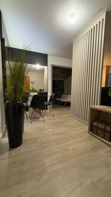 Excelente Duplex com 68m², 2 dormitórios com sacada, 1 banheiro, 1 lavabo, sala, cozinha, área de serviço, churrasqueira. Roda forro em gesso em todos os cômodos do imóvel. Todo fechado atrás com vidro. Duas vagas de garagem com pergolado em fibra transparente.