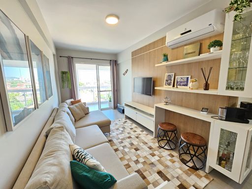 Sala, cozinha, lavanderia, sacada fechada, banheiro. Área privativa DE 87,00M2.