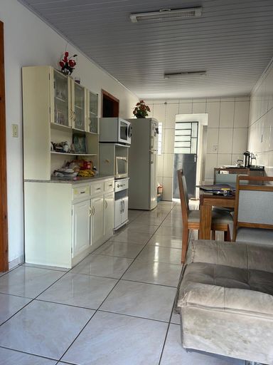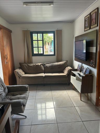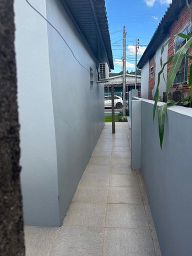 Casa de alvenaria com exclusividade com 02 dormitórios, sala cozinha conjugadas, 02 banheiros, garagem fechada para 02 carros, churrasqueira, lavanderia, todo murada com grades na frente, pátio na frente e um pequeno na lateral e nos fundos.