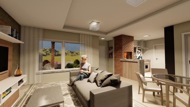 A área social conta com abertura de 4m com vista para o pátio, integrando sala de estar, jantar e cozinha — um espaço ideal para criar um verdadeiro refúgio particular, com possibilidade de piscina ou jacuzzi, perfeito para momentos de descanso e convivência.