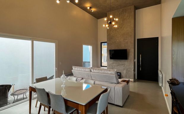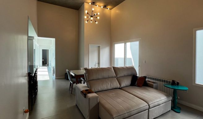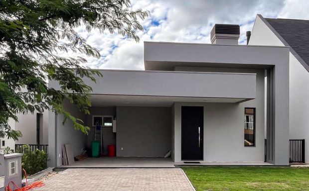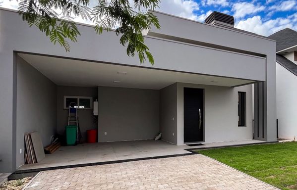 Casa no Country oferece um espaço de 157 m² de área construída, com 3 dormitórios, sendo 1 suíte, e 3 banheiros. A área externa é enriquecida com churrasqueira e espaço para lazer, enquanto o interior apresenta móveis planejados e persianas automatizadas, o imóvel conta com interfone, calefator e central de gás externa