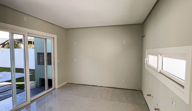 O imóvel conta com diferenciais exclusivos como closet, área gourmet com churrasqueira, mezanino, pátio privativo e persianas automatizadas. A infraestrutura foi pensada para o seu bem-estar, oferecendo espera para água quente, ar-condicionado e gás, além de lavanderia, depósito e lavabo. Tudo isso em um terreno com contenção e telha plana de concreto, garantindo solidez e segurança para toda a família.