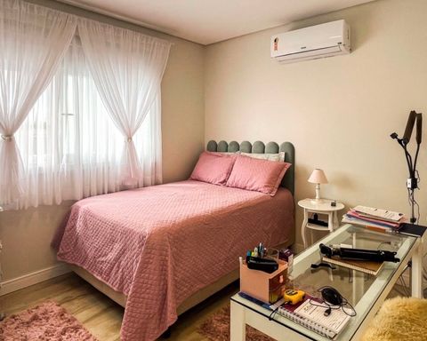 om 3 dormitórios, sendo 1 suíte, e 2 banheiros, o espaço foi projetado para atender todas as suas necessidades. Desfrute de ambientes amplos e iluminados, com móveis planejados que proporcionam funcionalidade e elegância em cada canto. A sala de estar, jantar e TV são perfeitas para momentos em família, enquanto a área gourmet com churrasqueira promete encontros inesquecíveis. Além da beleza interna, a casa conta com uma vista deslumbrante para a área verde, criando um ambiente tranquilo e relaxante