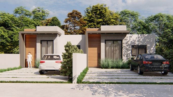 Casa geminada em estilo contemporâneo com excelente padrão de acabamento no Arroio Grande.