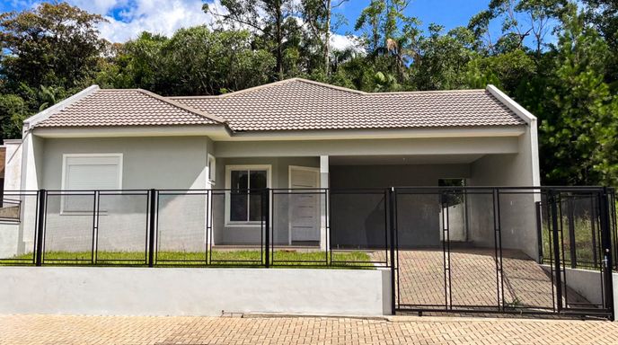Casa a venda em construção no loteamento Alles Gut, com 03 dormitórios sendo 01 suíte , sala cozinha conjugadas, garagem para 02 carros, lavanderia. Telha plana de concreto aberturas internas e externas de aluminio paredes internas com massa corrida Espera para àgua quente Piso porcelanato Calfinagem (massa corrida) ENTREGA EM FEVEREIRO DE 2026