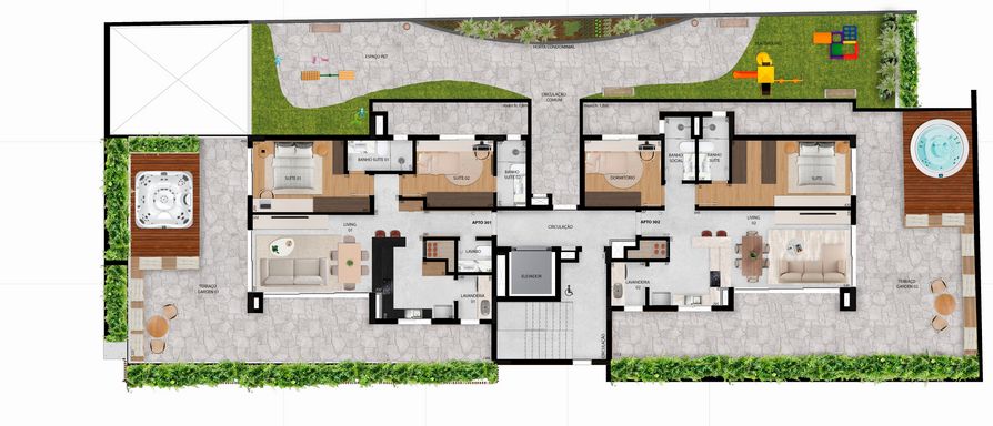 Pensado para o estilo de vida contemporâneo, o condomínio contará com rooftop com terraço, espaço fitness, brinquedoteca e salão de festas, além de playground, espaço pet e horta comunitária. No térreo, os moradores terão à disposição minimarket, sala de reuniões, workspace e sistema inteligente de gestão de entregas.